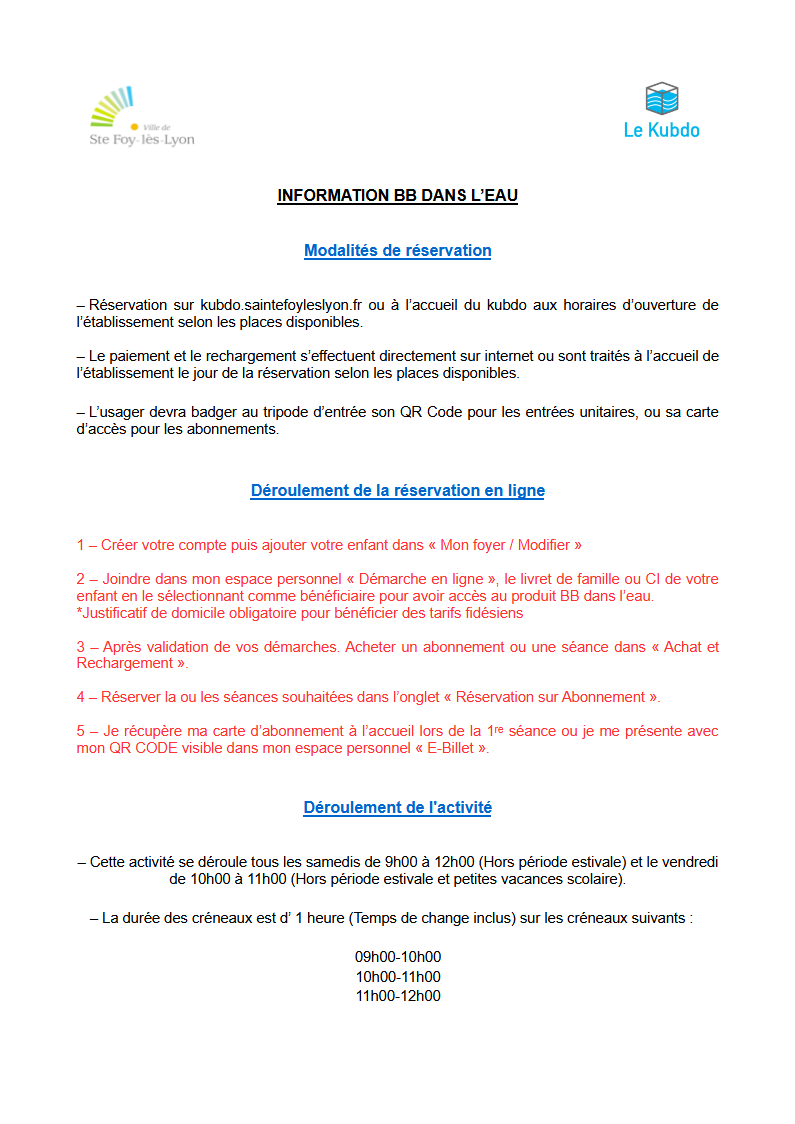 Créneau d’une heure sur réservation sur notre site internet ou à l'accueil de notre établissement aux horaires d'ouvertures selon les places disponibles.